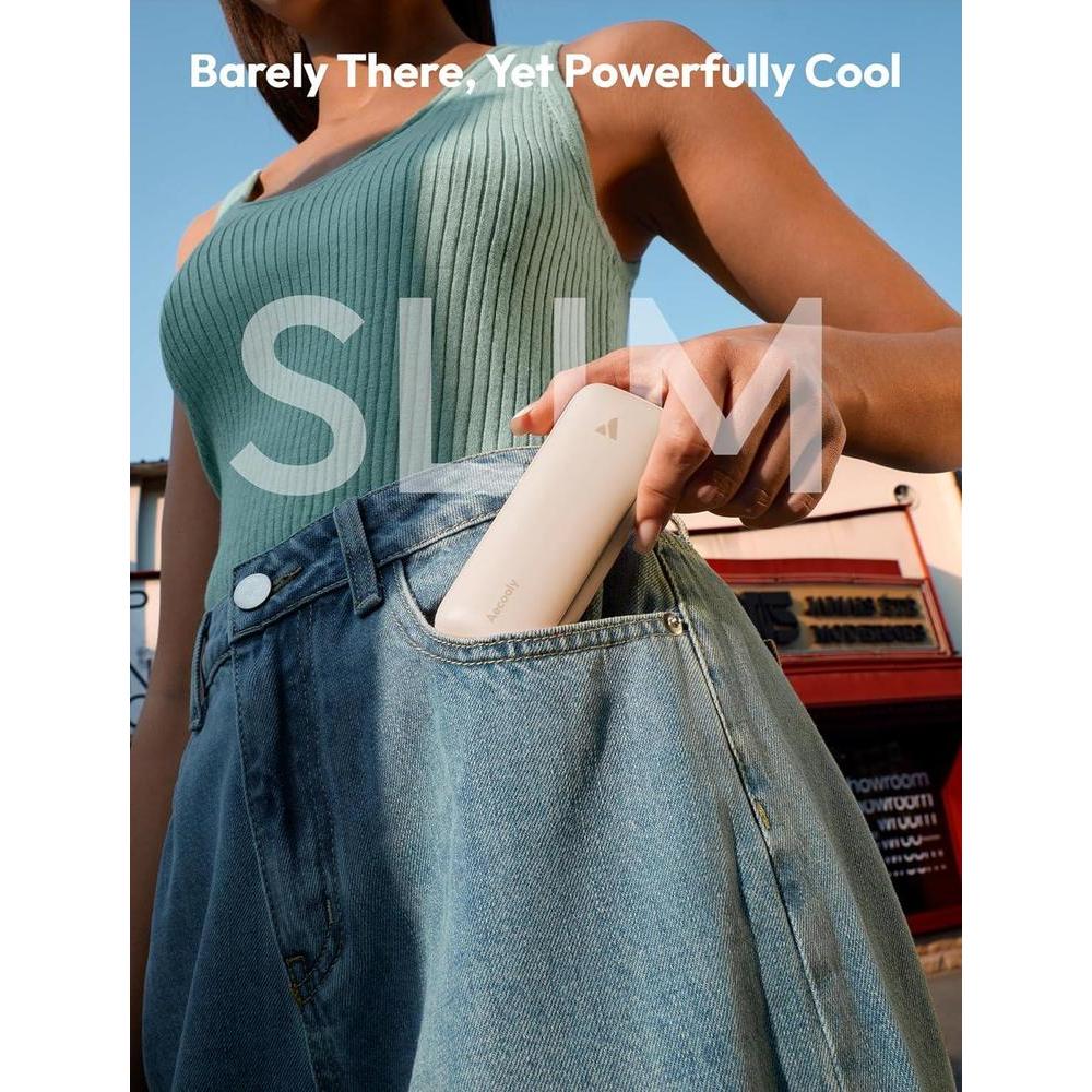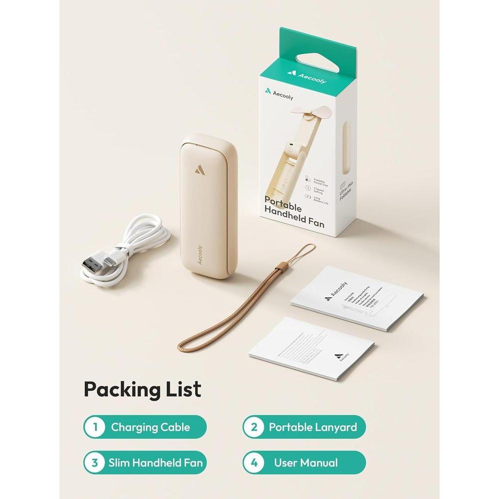 Aecooly Slim Portable Fan, Thin Handheld Fan, USB Rechargeable Mini Personal [24H Max Cooling Time]
