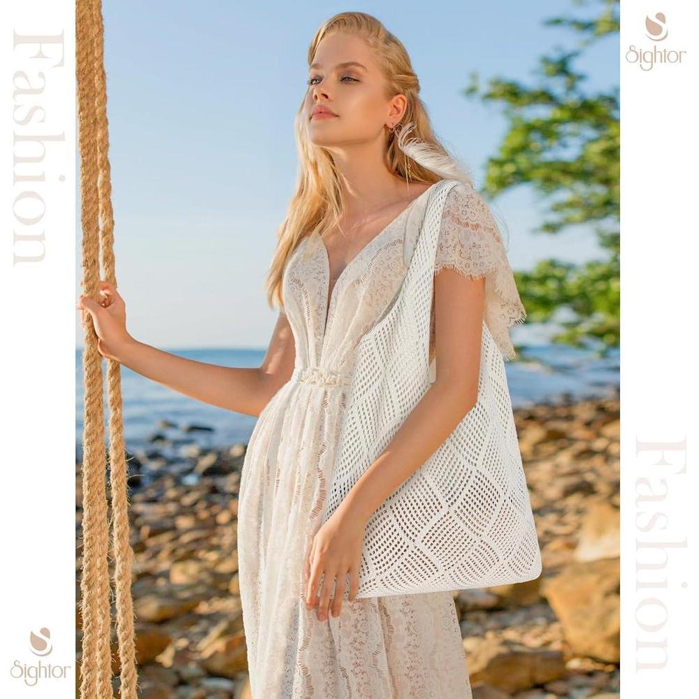 Sightor Crochet Tote Bag, Mesh Beach Bag Knit Summer Hobo Bag Vacation Boho Tote Bag for Women